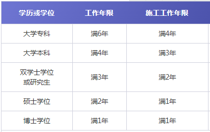 报考一级建造师需要满足相应的工作年限,学历不同,工作年限要求不同,且需要同时满足工作经验与施工工作年限才可以报考,具体要求如下: